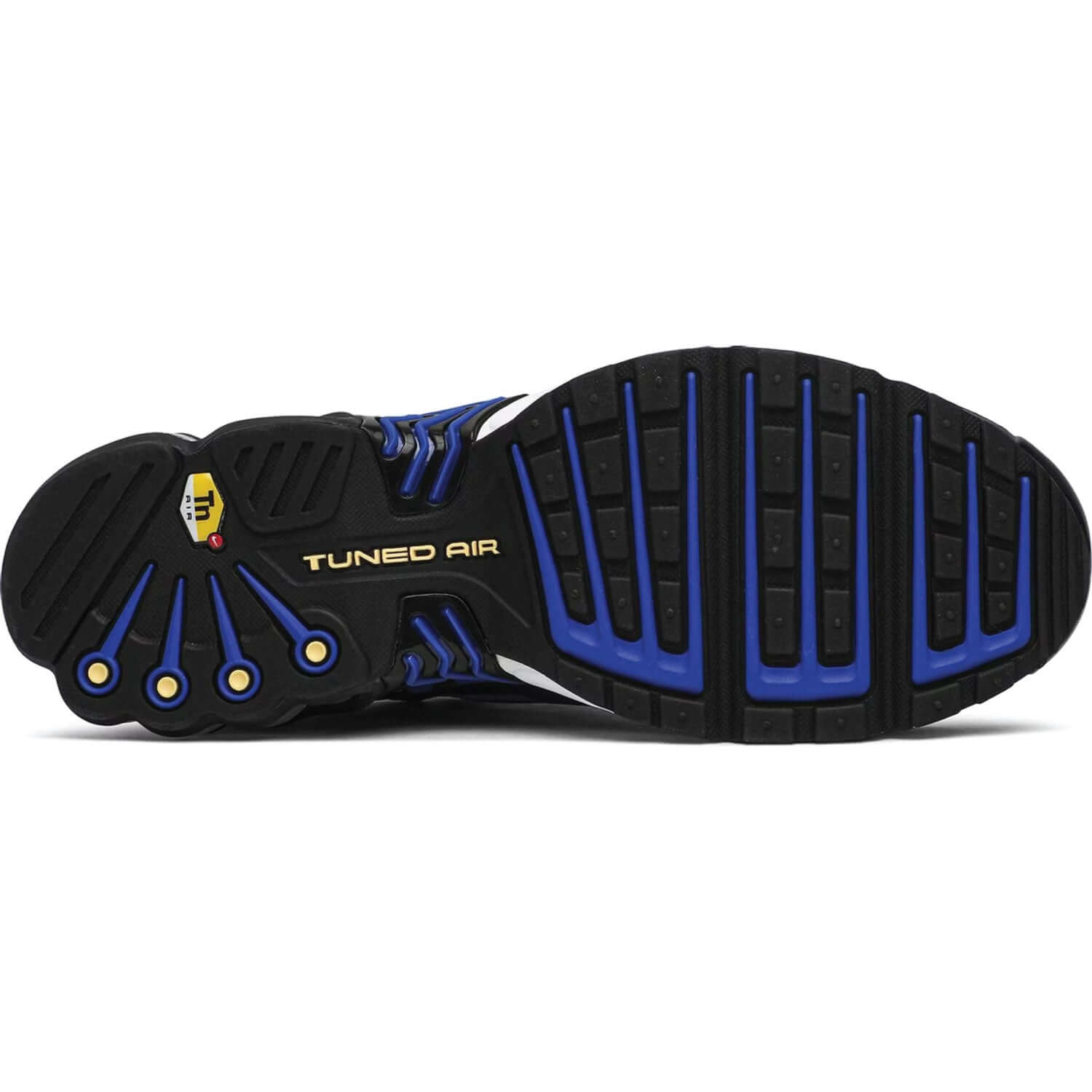 Released November 2019, the Air Max Plus 3 ‘Hyper Blue’ features a transitioning colorway that reinforces its swooping design lines. Foam-backed padding around the collar protects the ankle from impacts, while the angular heel clip composed of cut-away ridges stabilizes the foot without weighing it down. Created for a streamlined yet sturdy fit and feel, this retro runner comes equipped with skinny support strips and a breathable mesh forefoot over Max Air cushioning.
